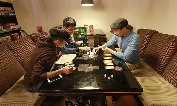 一小群人擠在好友家玩桌遊,大家各自提供桌遊到爐主家玩,一起研究原文遊戲規則